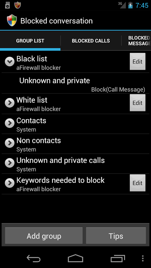 ☆ To make sure aFirewall has higher priority to monitor incoming messages, please install aFirewall before other third-party messaging applications such Go SMS Pro, Handcent etc.