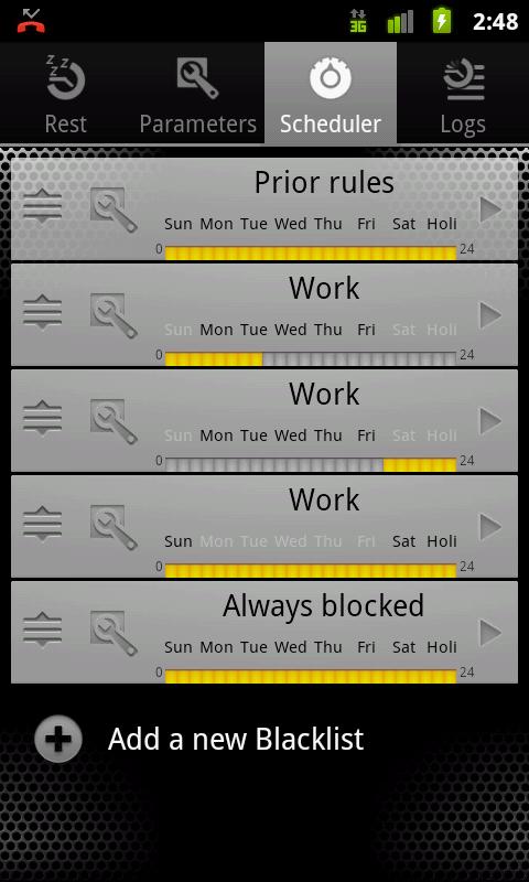 ☆ Blocking scenario (can be set up from app's settings or widget (press HOME/menu/Blacklist/widget)